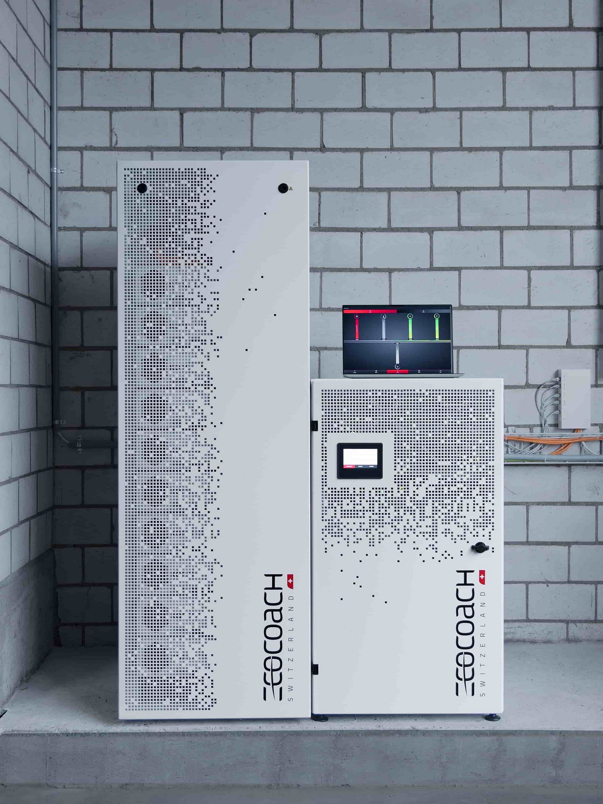 The ecoEnergyCoach energy management system (EMS) integrated into the battery storage system covers not only the electrical side but also harmonises all components for heat, water, and gas, for example, across all sectors. The holistic design of the energy infrastructure ensures economical, safe, and sustainable operation.